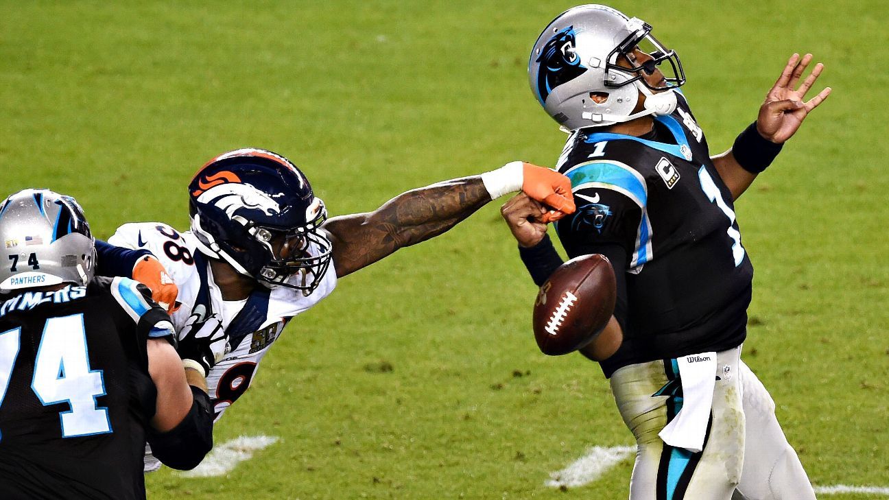 Broncos Von Miller sacks water polo playing Cam Newton on